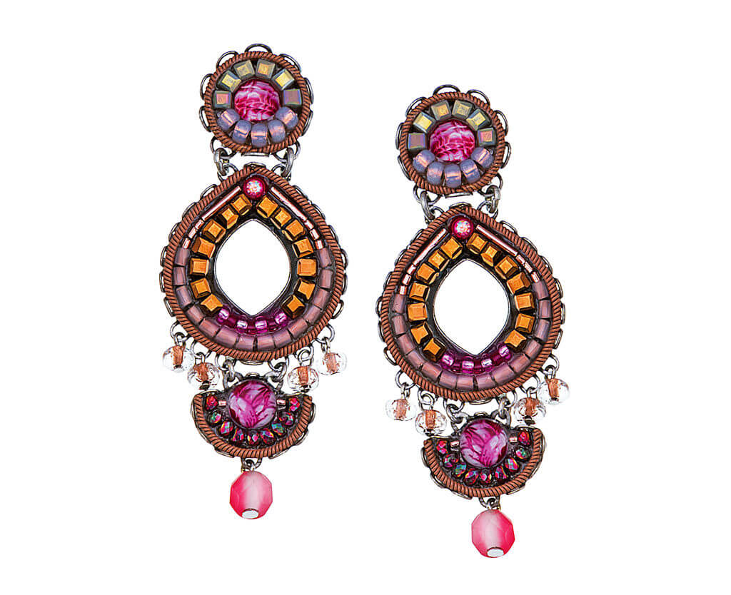 Orecchini Ayala Bar Classic, i gioielli sono limitati in quantità. Tutto il catalogo di gioielli AyalaBar Personalmente disegnato dall’artista, ogni collezione di gioielli trasmette una firma unica. L’impronta della creatività che attinge a ricchezze semplici per trasformarle in oggetti di accattivante bellezza. E’ composto da metalli non preziosi abbinati a perle di vetro, pietre minerali e strass di cristallo.