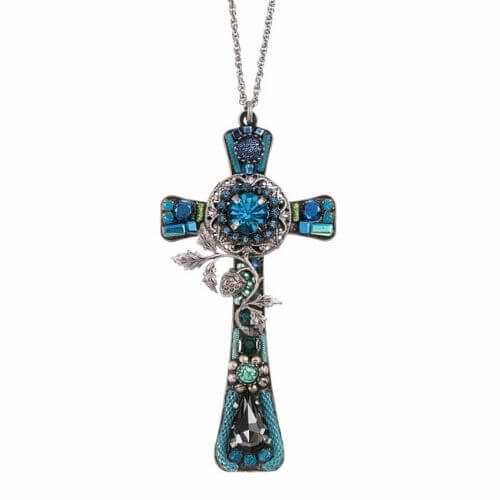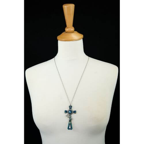 Collana con croce Ayala Bar Classic, i gioielli sono limitati in quantità. Tutto il catalogo di gioielli AyalaBar Personalmente disegnato dall’artista, ogni collezione di gioielli trasmette una firma unica. L’impronta della creatività che attinge a ricchezze semplici per trasformarle in oggetti di accattivante bellezza. E’ composto da metalli non preziosi abbinati a perle di vetro, pietre minerali e strass di cristallo.