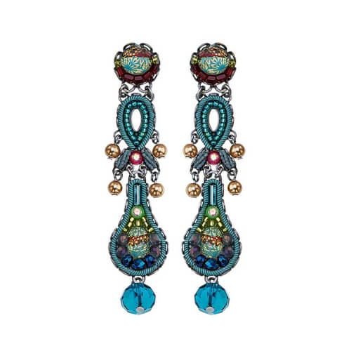 Orecchini Ayala Bar Classic, i gioielli sono limitati in quantità. Tutto il catalogo di gioielli AyalaBar Personalmente disegnato dall’artista, ogni collezione di gioielli trasmette una firma unica. L’impronta della creatività che attinge a ricchezze semplici per trasformarle in oggetti di accattivante bellezza. E’ composto da metalli non preziosi abbinati a perle di vetro, pietre minerali e strass di cristallo.