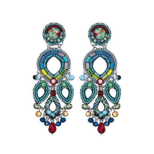 Orecchini Ayala Bar Classic, i gioielli sono limitati in quantità. Tutto il catalogo di gioielli AyalaBar Personalmente disegnato dall’artista, ogni collezione di gioielli trasmette una firma unica. L’impronta della creatività che attinge a ricchezze semplici per trasformarle in oggetti di accattivante bellezza. E’ composto da metalli non preziosi abbinati a perle di vetro, pietre minerali e strass di cristallo.