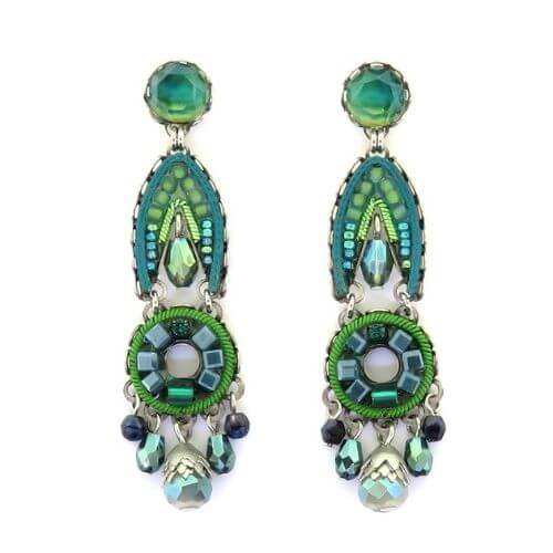 Orecchini Ayala Bar Classic, i gioielli sono limitati in quantità. Tutto il catalogo di gioielli AyalaBar Personalmente disegnato dall’artista, ogni collezione di gioielli trasmette una firma unica. L’impronta della creatività che attinge a ricchezze semplici per trasformarle in oggetti di accattivante bellezza. E’ composto da metalli non preziosi abbinati a perle di vetro, pietre minerali e strass di cristallo.