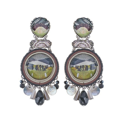 Orecchini Ayala Bar Classic, i gioielli sono limitati in quantità. Tutto il catalogo di gioielli AyalaBar Personalmente disegnato dall’artista, ogni collezione di gioielli trasmette una firma unica. L’impronta della creatività che attinge a ricchezze semplici per trasformarle in oggetti di accattivante bellezza. E’ composto da metalli non preziosi abbinati a perle di vetro, pietre minerali e strass di cristallo.