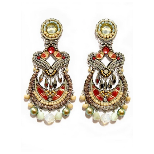 Orecchini Ayala Bar Classic, i gioielli sono limitati in quantità. Tutto il catalogo di gioielli AyalaBar Personalmente disegnato dall’artista, ogni collezione di gioielli trasmette una firma unica. L’impronta della creatività che attinge a ricchezze semplici per trasformarle in oggetti di accattivante bellezza. E’ composto da metalli non preziosi abbinati a perle di vetro, pietre minerali e strass di cristallo.