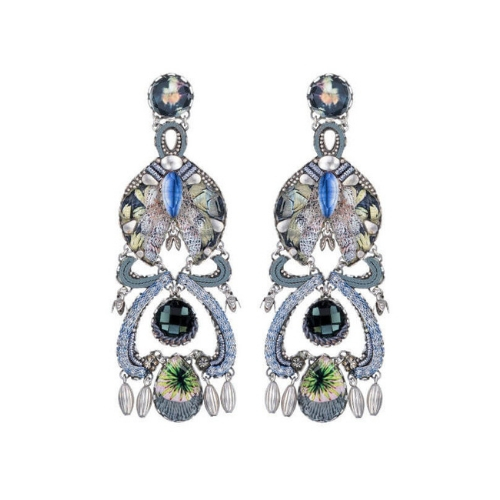 Orecchini Ayala Bar Classic, i gioielli sono limitati in quantità. Tutto il catalogo di gioielli AyalaBar Personalmente disegnato dall’artista, ogni collezione di gioielli trasmette una firma unica. L’impronta della creatività che attinge a ricchezze semplici per trasformarle in oggetti di accattivante bellezza. E’ composto da metalli non preziosi abbinati a perle di vetro, pietre minerali e strass di cristallo.
