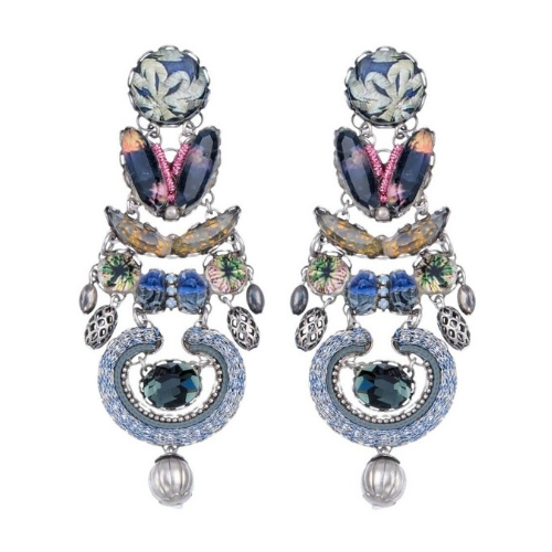 Orecchini Ayala Bar Classic, i gioielli sono limitati in quantità. Tutto il catalogo di gioielli AyalaBar Personalmente disegnato dall’artista, ogni collezione di gioielli trasmette una firma unica. L’impronta della creatività che attinge a ricchezze semplici per trasformarle in oggetti di accattivante bellezza. E’ composto da metalli non preziosi abbinati a perle di vetro, pietre minerali e strass di cristallo.