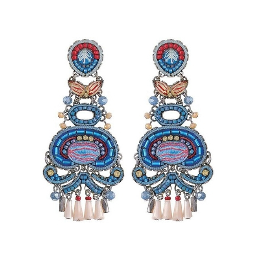 Orecchini Ayala Bar Classic, i gioielli sono limitati in quantità. Tutto il catalogo di gioielli AyalaBar Personalmente disegnato dall’artista, ogni collezione di gioielli trasmette una firma unica. L’impronta della creatività che attinge a ricchezze semplici per trasformarle in oggetti di accattivante bellezza. E’ composto da metalli non preziosi abbinati a perle di vetro, pietre minerali e strass di cristallo.
