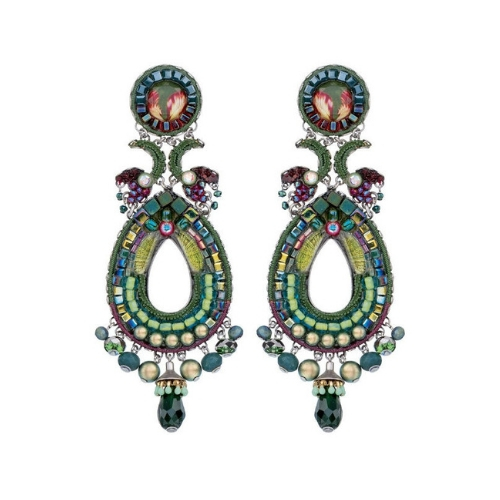Orecchini Ayala Bar Classic, i gioielli sono limitati in quantità. Tutto il catalogo di gioielli AyalaBar Personalmente disegnato dall’artista, ogni collezione di gioielli trasmette una firma unica. L’impronta della creatività che attinge a ricchezze semplici per trasformarle in oggetti di accattivante bellezza. E’ composto da metalli non preziosi abbinati a perle di vetro, pietre minerali e strass di cristallo.