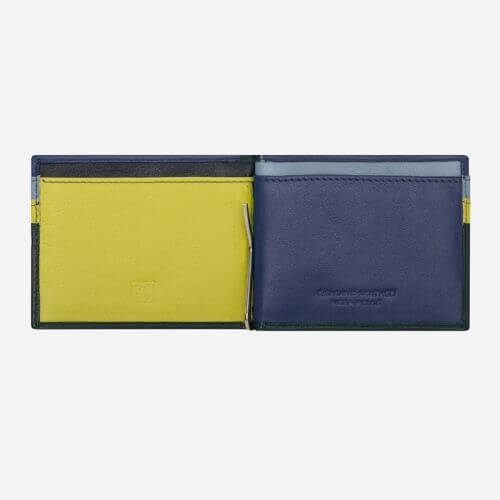 Comodo portafoglio con clip interna per chi vuole avere tutto a portata di mano. Spazio per carte esterno, due spazi interni per i documenti. Un abbinamento di colori moderno ma discreto, unisce funzionalità ad estetica contemporanea.