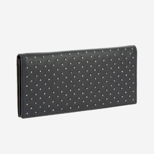 Rifinito con micro borchie e progettato da Zaven, il nostro portafoglio in pelle è perfetto per organizzare al meglio l’essenziale. L’ampio scomparto interno è capiente a sufficienza per custodire il cellulare, le banconote e le carte di credito che usi di più. Perfetto da indossare anche come piccola pochette nelle tue serate.