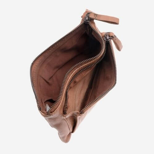 Portafoglio donna modello a busta realizzato a mano in morbida pelle naturale di alta qualità, tinto in capo. Chiusura con lampo metallica YKK e accessori di colore rame anticato. Tasca frontale esterna con zip. Il colore eterogeneo e le irregolarità del pellame o delle finiture esprimono il carattere originale e vissuto del portafoglio. Lo stile di questo portafoglio è la combinazione di design italiano e di un processo artigianale che successivamente lo sottopone ad un lavaggio che lo tinge in tutti i suoi dettagli. Il sapore vissuto, l’aspetto vintage e i colori che si ispirano agli elementi della natura donano originalità e carattere al portafoglio.