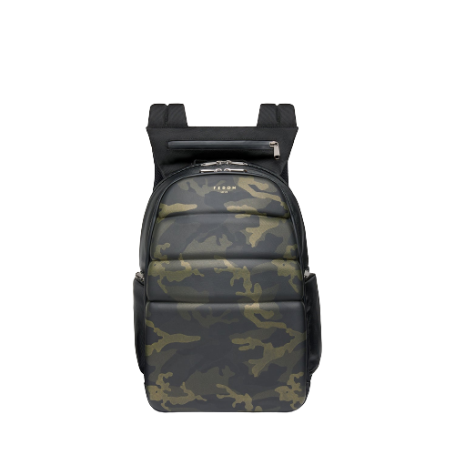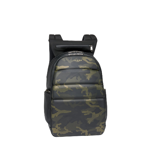 • Parte posteriore imbottita con spallacci regolabili, sistema di aggancio al trolley e logo Fedon 1919 impresso lucido