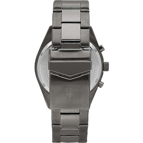 Orologio multifunzione da uomo di maserati della collezione competizione. Orologio con cassa in acciaio con pvd canna di fucile del diamentro di 43mm e quadrante di colore sunray blu. Il cinturino è in acciaio di colore canna di fucile. Vetro minerale. La resistenza all’acqua è di 10 atm e il movimento è al quarzo.
