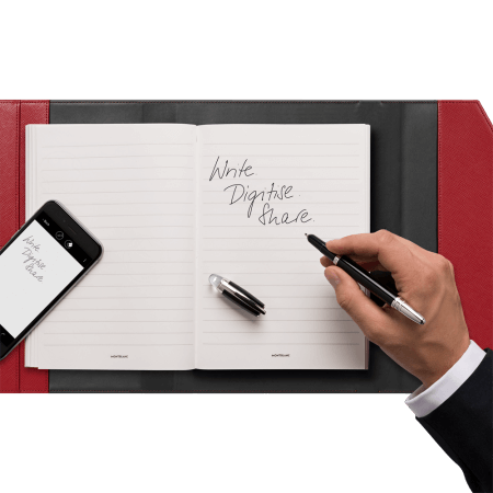 La collezione Augmented Paper Sartorial unisce l’eleganza e la raffinatezza della pelle Sartorial alla tecnologia moderna della scrittura a mano digitalizzata. Montblanc Augmented Paper permette di scrivere sulla carta tradizionale e nel contempo di accedere agli appunti scritti a mano anche attraverso il proprio dispositivo mobile.  Archiviare tutti gli appunti e gli schizzi grazie al digitalizzatore incluso nella busta in pelle • Premere un semplice pulsante per trasmettere gli appunti al dispositivo mobile attraverso la tecnologia Bluetooth a basso consumo energetico • Trasformare gli appunti scritti a mano in testo digitale e modificarli con l’app Montblanc Hub.