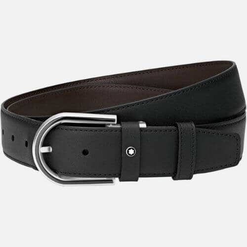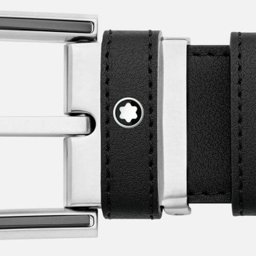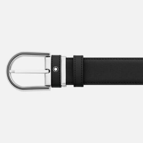 Mont Blanc – Cintura con fibbia a ferro di cavallo in acciaio pregiato lucido e opaco con finitura nera – 126032