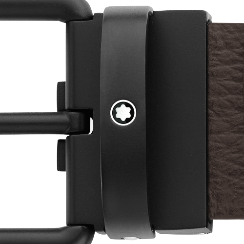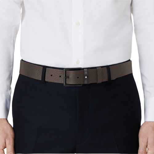 Ideale in ogni occasione, questa cintura reversibile in pelle presenta una combinazione caratteristica di colori e texture. Con un lato in pelle granulata blu e l’altro in pelle liscia nera, questa cintura da 35 mm ruota attorno a una fibbia a rullo con logo Montblanc.