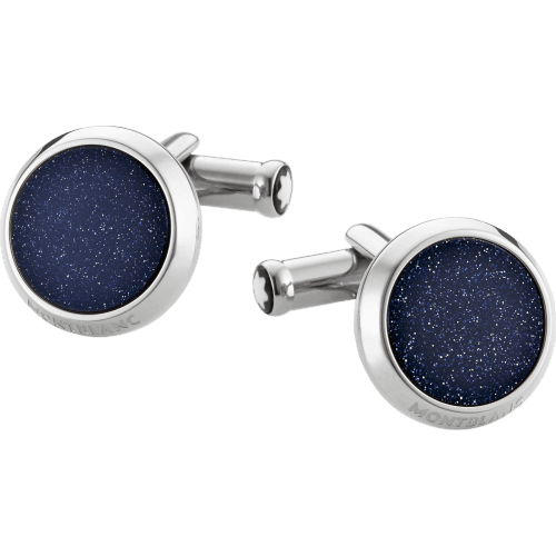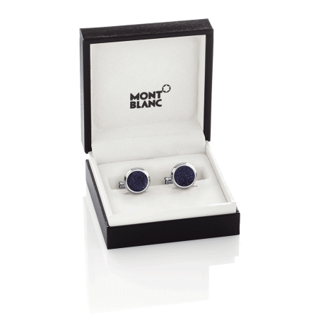L’intramontabile forma rotonda in acciaio pregiato con inserto in pietra del sole blu (eliolite), ispirata allo strumento da scrittura Meisterstück, crea un gioiello dalla forte identità Montblanc.