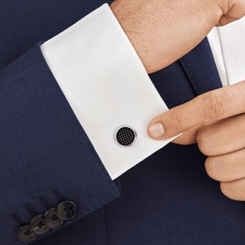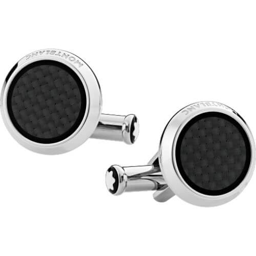 Mont Blanc Gemelli rotondi in acciaio pregiato con inserto lavorato effetto carbonio – 124295