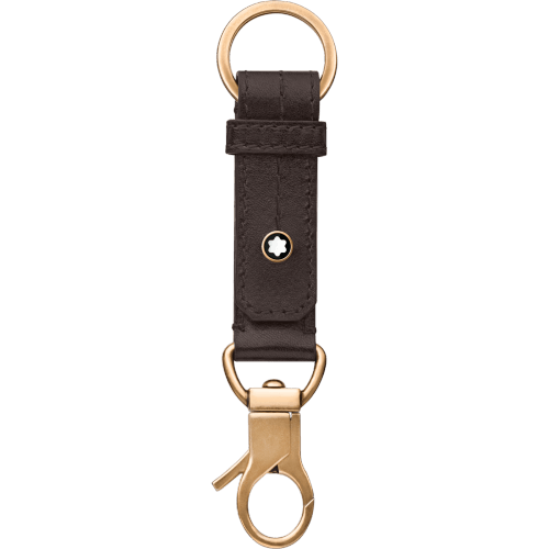 Realizzata in esclusiva pelle con concia vegetale, sfoggia l’emblema Montblanc decorato da un anello esterno color oro anticato. La stessa finitura metallica è applicata anche al gancio e all’anello.