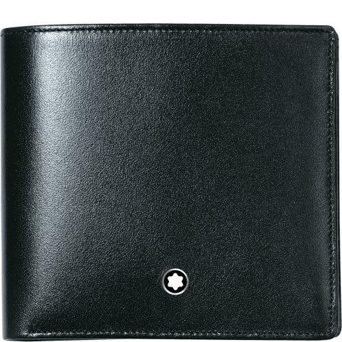 Portafoglio 4 scomparti, nero lucido esclusivo Montblanc, emblema Montblanc con anello finitura palladio, 4 tasche per carte di credito, 2 scomparti per banconote, portamonete con patta.