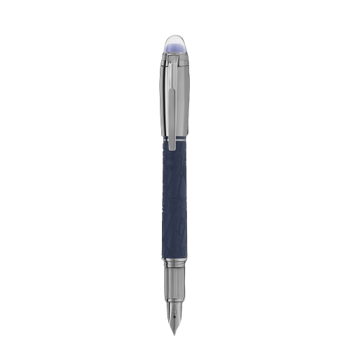 Starwalker SpaceBlue si spinge oltre il Pianeta Terra per rivolgere lo sguardo verso le stelle e la galassia. Decisamente maschile e futuristica, questa nuova collezione StarWalker presenta un nuovo look per il corpo in resina, con un design che ricorda i motivi complessi della Struttura di Widmanstätten, una delle creazioni più ipnotiche della natura. Il cappuccio e i dettagli in metallo presentano una finitura rutenio scuro, mentre la pregiata resina opaca è di un intenso colore blu spazio, che richiama le tonalità di un cielo stellato. Anche la cupoletta sulla parte superiore del cappuccio, nella quale fluttua l’emblema Montblanc, ha un intenso colore blu spazio. La stilografica è realizzata a mano con un pennino in oro Au585 finitura rutenio.