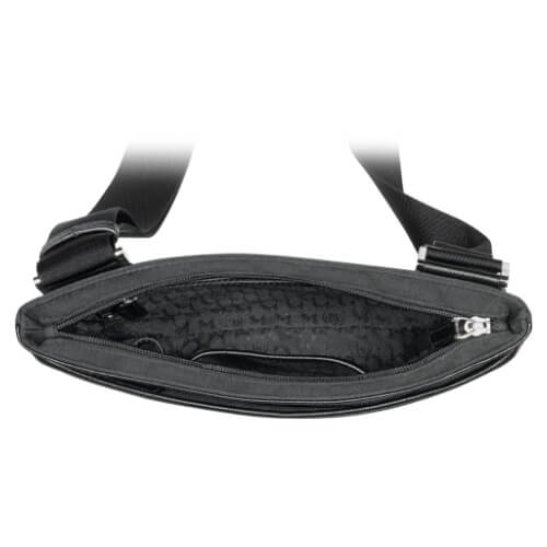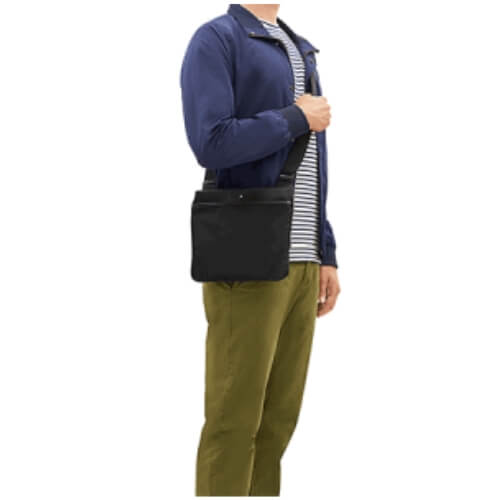 La collezione Montblanc Sartorial Jet unisce eleganza, sobrietà e leggerezza, grazie alla combinazione di pelle stampa Saffiano nero e tessuto nylon nero idrorepellente e antigraffio con finitura satinata. Lo scomparto principale si chiude con una cerniera e all’interno offre una tasca aperta per telefoni cellulari, 2 passanti per strumenti da scrittura e una tasca con cerniera.