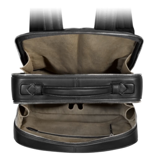 Una scelta elegante per la vita di tutti i giorni per soddisfare i clienti più alla moda, in linea con i gusti dell’uomo moderno e attivo. Compagno ideale per gli affari in città, progettato per essere lineare ma funzionale, lo zaino grande presenta 2 scomparti principali, 1 tasca anteriore con cerniera e 1 piccola tasca posteriore con cerniera e protezione antipioggia in nylon. Scomparto imbottito per computer portatile, 2 tasche per telefoni cellulari, 2 passanti per strumenti da scrittura e tasche aperte e con cerniera. Inoltre è dotato di un sistema satellite per agganciarlo a un trolley.