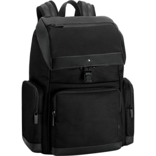 la linea My Montblanc Nightflight consente di viaggiare con leggerezza ed eleganza. Lo zaino grande con patta offre un’ampia apertura con coulisse e chiusura con patta e si rivela un’ottima borsa quotidiana con interno spazioso e numerose tasche: uno scomparto imbottito per computer portatile e spazio ulteriore per cartelle e accessori, una tasca sulla patta per gli auricolari, tre passanti per strumenti da scrittura e varie tasche interne ed esterne. La borsa dispone di un sistema per agganciare la borsa a un trolley e una protezione antipioggia per coprire la borsa in caso di pioggia.