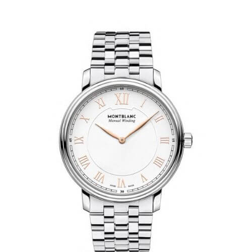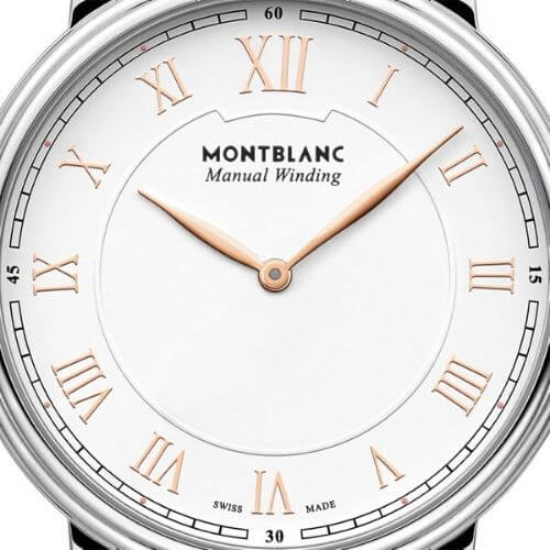 Il Montblanc Tradition Manual Winding vanta l’inconfondibile design Montblanc nonché i classici codici dell’arte orologiera. La cassa di 40 mm in acciaio pregiato è caratterizzata dalle tipiche anse diritte Montblanc e da un’esclusiva doppia lunetta con vetro zaffiro bombato. Il design esprime i classici codici orologieri, come il quadrante bianco-argenté con numeri romani e un imponente numero “XII”.