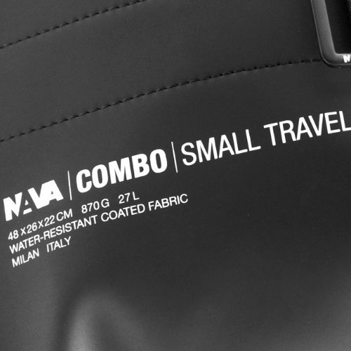 Il borsone da viaggio small della linea Combo è un accessorio pratico e compatto pensato per chi viaggia spesso per lavoro o per svago, ideale per un paio di giorni fuori casa. Essenziale e versatile, è realizzato con un materiale tecnico water-resistant, con chiusura a zip, due maniglie e tracolla amovibile. L’interno è volutamente privo di tasche e comparti per essere organizzato come si desidera, con solo una busta per gli oggetti essenziali, sganciabile e utilizzabile anche da sola.