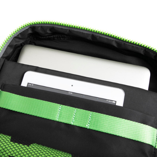 Zaino organizzato della linea Easy Break realizzato con rete tridimensionale con trattamento anti-acqua, inserti in PU, zip, tiralampo e webbing colorati a contrasto. Un unico comparto con tasche imbottite porta computer e tablet, nastro porta penne e tasca interna con fodera RFID chiusa con zip. All’esterno una tasca frontale e il trolley sleeve. Uno zaino dotato di ogni comfort per un utilizzo giornaliero dal lavoro al tempo libero, ideale per chi predilige uno stile giovane e moderno.
