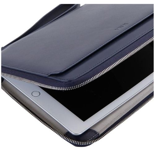 Custodia porta tablet e iPad della linea “Milano” realizzata in pelle pieno fiore italiana. La chiusura con zip, le minuterie in metallo, il cinturino e la tasca frontale conferiscono eleganza a un prodotto dal design puro ed essenziale. L’interno della custodia presenta da un lato una patella porta documenti e dall’altro un porta tablet o iPad fino a 9,7″. Un vero tocco di classe.