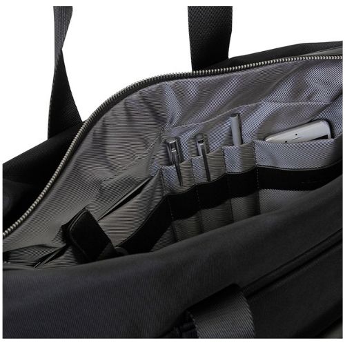 Cartella organizzata della linea “Traveller” realizzata in poliestere con dettagli in pu e accessori in metallo satinato. Ampio comparto principale organizzato internamente con tasca imbottita porta computer e porta tablet e altre tasche porta penne e porta oggetti. Tasca frontale, tracolla amovibile e trolley sleeve.