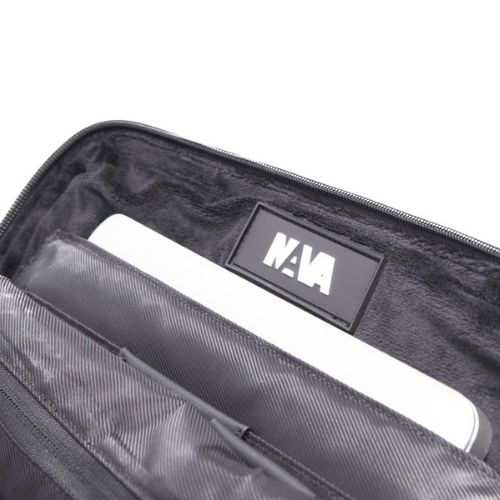 Zaino della linea Uniform caratterizzato da un design originale che ricorda la cartella classica rivisitata in forma di zaino. È realizzato con materiali tecnici come il tessuto e il PU con doppia chiusura, con lampo e patella con calamite laterali. Una tasca frontale con apertura a zip nasconde altre due tasche aperte e due portapenne. Il comparto interno è organizzato con due tasche imbottite per pc e tablet, due tasche aperte e una tasca chiusa con zip con sistema RFID. Trolley sleeve.