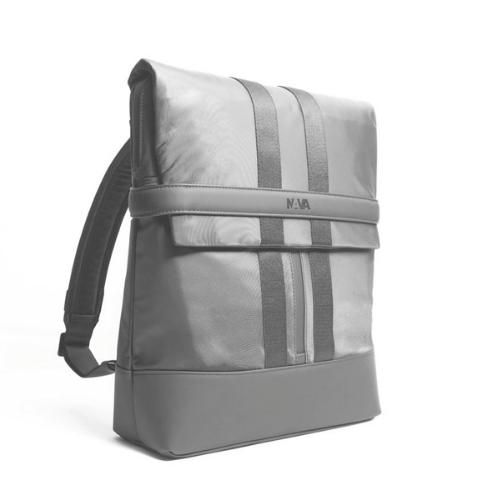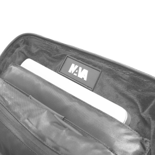 Zaino della linea Uniform caratterizzato da un design originale che ricorda la cartella classica rivisitata in forma di zaino. È realizzato con materiali tecnici come il tessuto e il PU con doppia chiusura, con lampo e patella con calamite laterali. Una tasca frontale con apertura a zip nasconde altre due tasche aperte e due portapenne. Il comparto interno è organizzato con due tasche imbottite per pc e tablet, due tasche aperte e una tasca chiusa con zip con sistema RFID. Trolley sleeve.