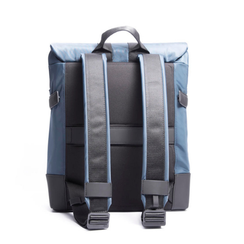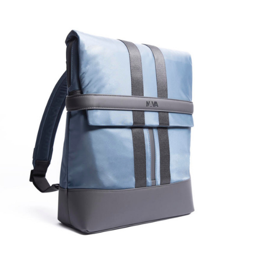 Zaino della linea Uniform caratterizzato da un design originale che ricorda la cartella classica rivisitata in forma di zaino. È realizzato con materiali tecnici come il tessuto e il PU con doppia chiusura, con lampo e patella con calamite laterali. Una tasca frontale con apertura a zip nasconde altre due tasche aperte e due portapenne. Il comparto interno è organizzato con due tasche imbottite per pc e tablet, due tasche aperte e una tasca chiusa con zip con sistema RFID. Trolley sleeve.