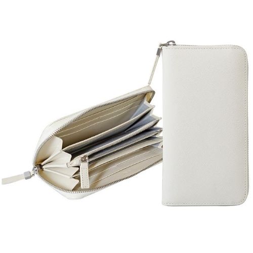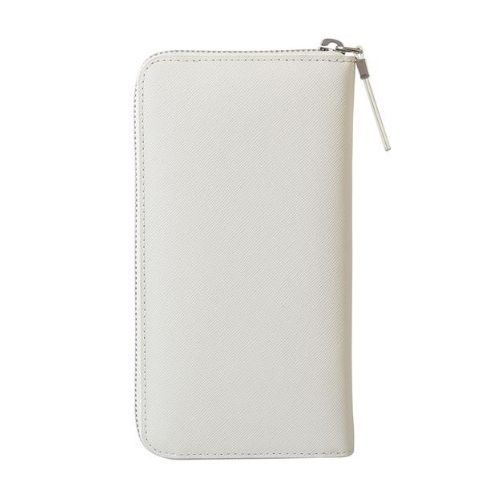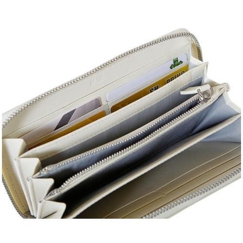 Portafoglio da donna con chiusura zip della linea “Via Durini” realizzato in pelle saffiano e pelle liscia con dettagli in metallo satinato. E’ l’accessorio ideale con 8 cc e portamonete centrale chiuso con zip per la donna esigente che ha bisogno di avere con sé carte, documenti e tessere.