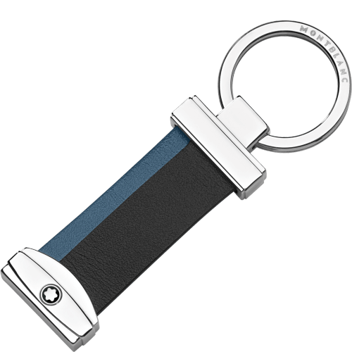 Il portachiavi effetto righe Meisterstück è caratterizzato da un’originale combinazione di pelle Meisterstück nera classica all’esterno e pelle azzurra. Presenta un design semplice ed elegante, con un anello in metallo e logo Montblanc inciso.