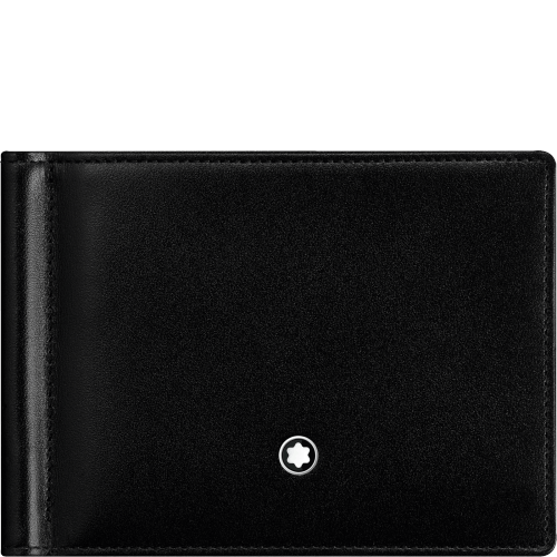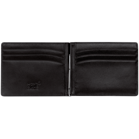 Portafoglio 6 scomparti, in pelle di vitello pieno fiore europea, nero lucido esclusivo Montblanc.