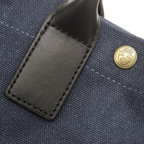 COMODA BORSA SHOPPING IN CANVAS. AMPIO SPAZIO CENTRALE CHIUSO CON 3 BOTTONI AUTOMATICI. TASCA INTERNA CHIUSA CON ZIP. MANICO E FINITURE IN PELLE.
