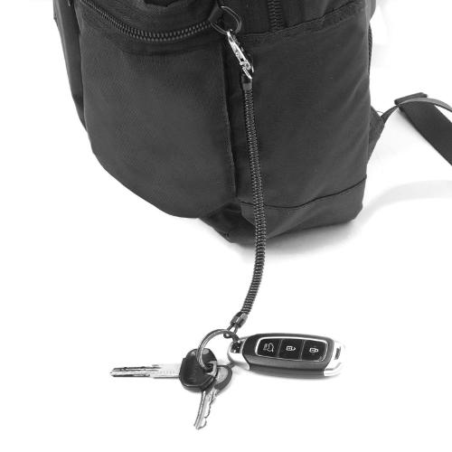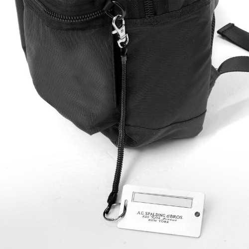 SULLA DESTRA PORTA INDIRIZZO IN ALLUMINIO CHE PUÒ DIVENTARE PORTACHIAVI INSERITO NELLA TASCA ESTERNA PIÙ BASSA.