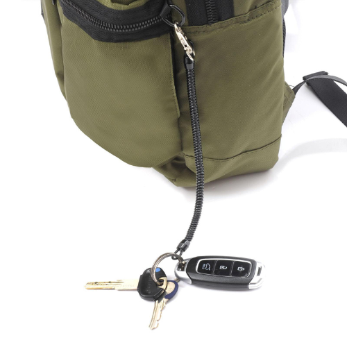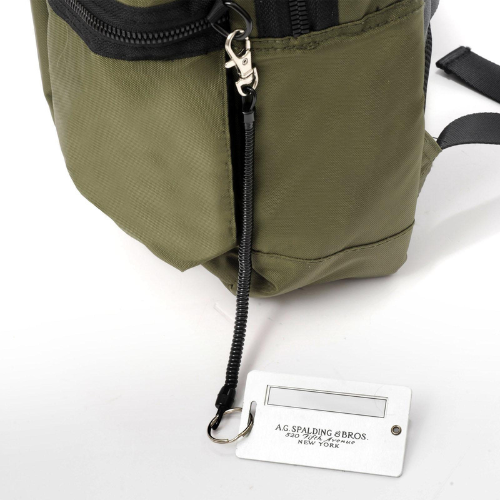 SULLA DESTRA PORTA INDIRIZZO IN ALLUMINIO CHE PUÒ DIVENTARE PORTACHIAVI INSERITO NELLA TASCA ESTERNA PIÙ BASSA.