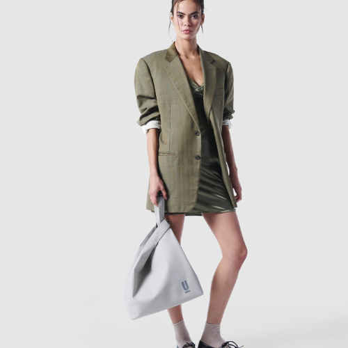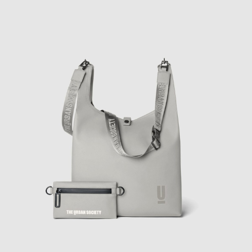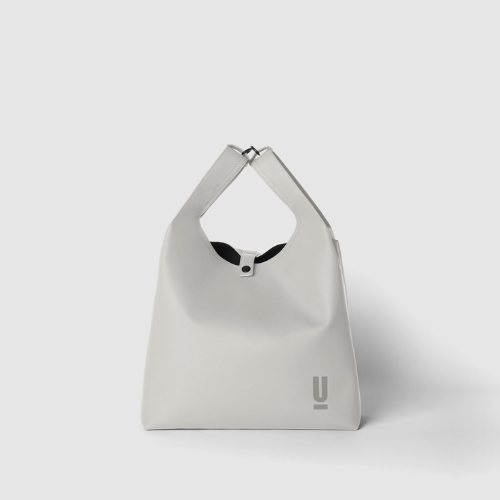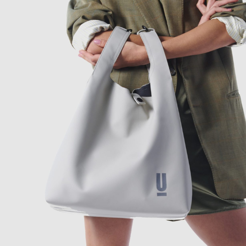 Borsa stile shopper per donna, realizzata in PU eco-tech, portata a braccia o a mano. Ha una custodia interna rimovibile con logo riflettente, due anelli laterali per l’attacco “sistema” che può essere collegato internamente tramite moschettone in metallo ed è dotato di zip resistente all’acqua. Può essere indossato con tracolla regolabile rimovibile in nylon riciclato con logo a trama jacquard.