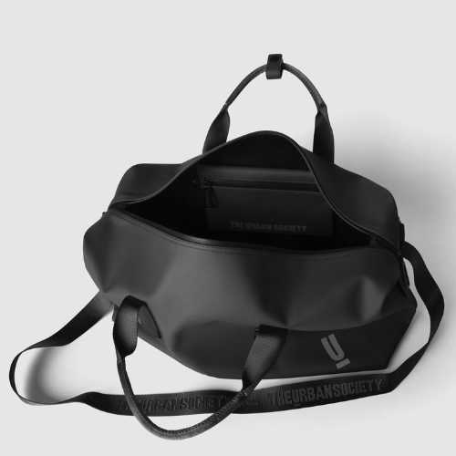 Borsa da viaggio a due maniglie in PU eco-tech, organizzata in una sezione con chiusura a zip resistente all’acqua.