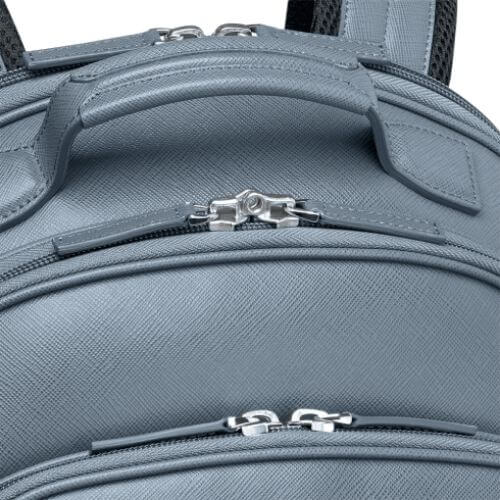 Pensato per il cittadino moderno, lo zaino è perfetto per uno stile di vita attivo. Consente di tenere i propri effetti personali organizzati e sicuri. 3 scomparti principali con cerniera e 1 tasca anteriore con cerniera. L’interno comprende uno scomparto per computer portatili, 2 tasche extra, 2 tasche aperte imbottite, 1 tasca con cerniera, 2 passanti per strumenti da scrittura. Cinghie regolabili e comodo manico in pelle.