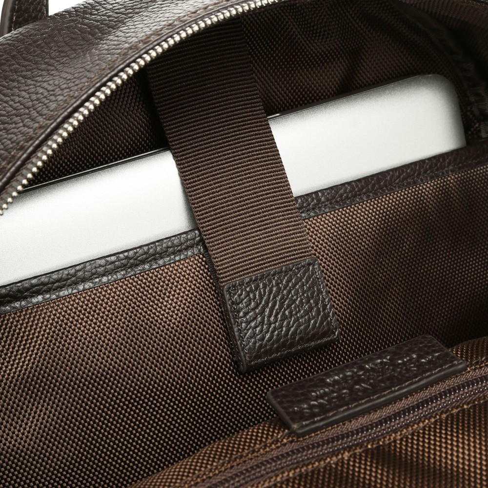 Descrizione: Lo zaino Vermont possiede una tasca esterna con portapenne, biglietti da visita e telefono. Una profonda tasca anteriore per documenti A4 e due tasche laterali. Una tasca sul retro per pc e ipad inoltre il retro zaino è imbottito con spallacci tecnici ed ergonomici. Lo zaino è contenuto in un sacchetto il tela personalizzato.